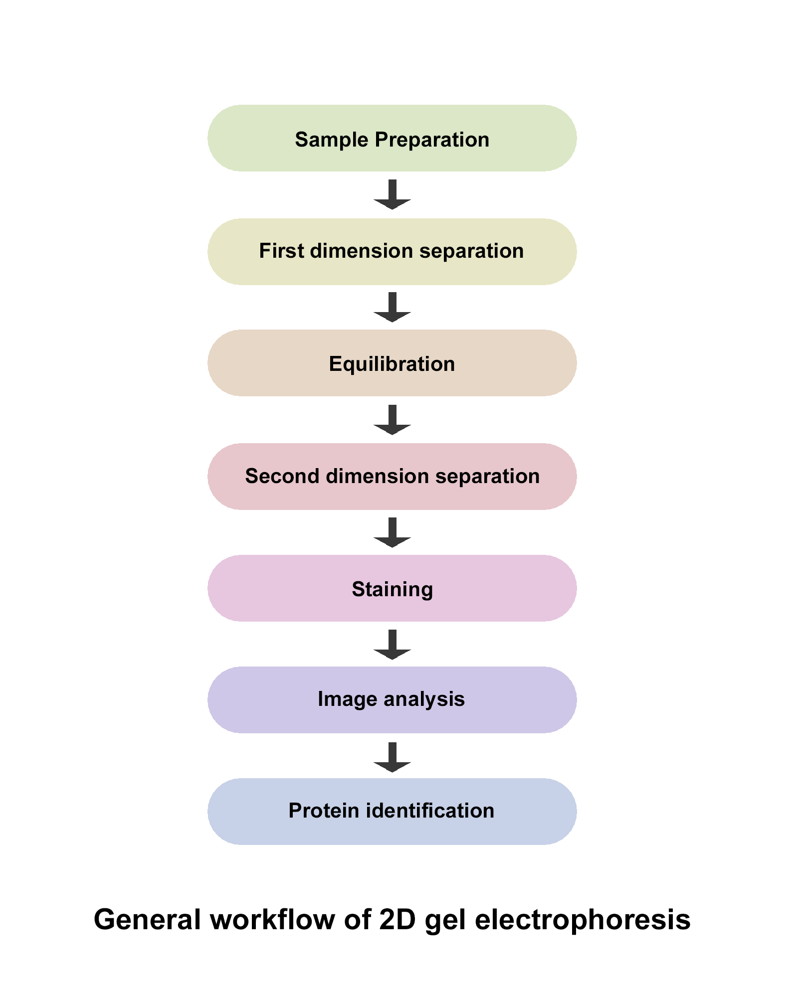 So, even though the name of 2D gel electrophoresis suggest a two-step process, it’s a five step process as follows :